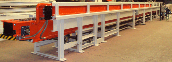 Los transportadores telescópicos se utilizan para llevar el sistema de cadena al fondo de la caja del camión y permitir de este modo la carga y descarga del mismo al ritmo del sistema de envasado, evitando el manipuleo de los envases vacíos.