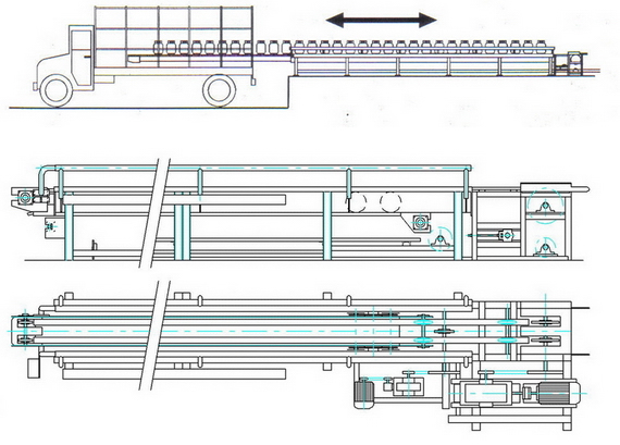 Los transportadores telescópicos se utilizan para llevar el sistema de cadena al fondo de la caja del camión y permitir de este modo la carga y descarga del mismo al ritmo del sistema de envasado, evitando el manipuleo de los envases vacíos.